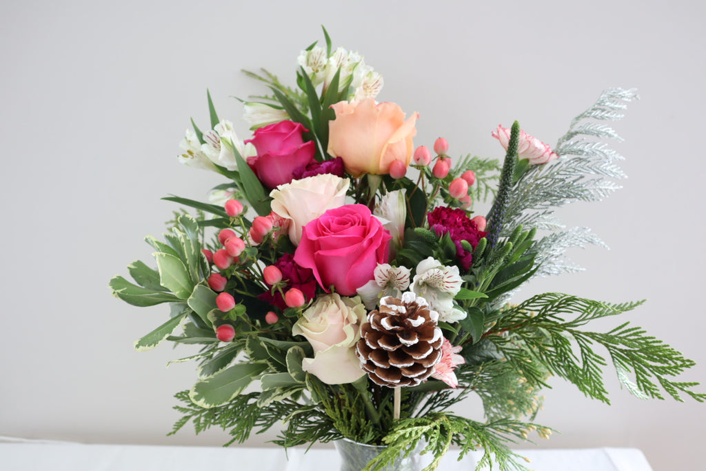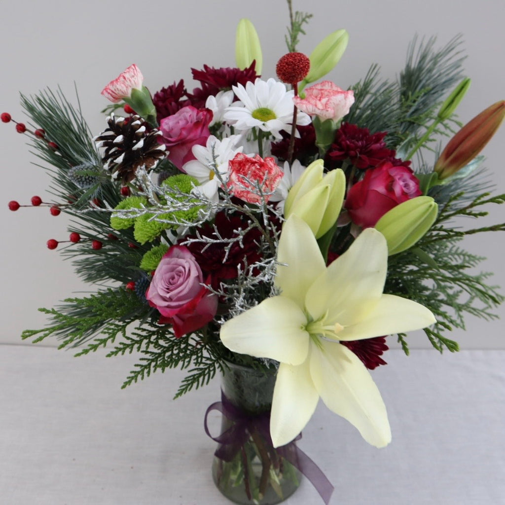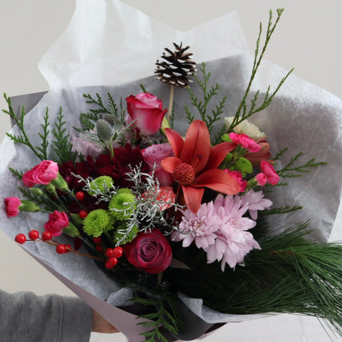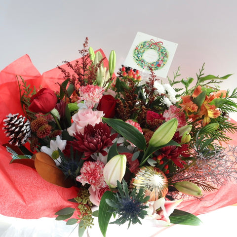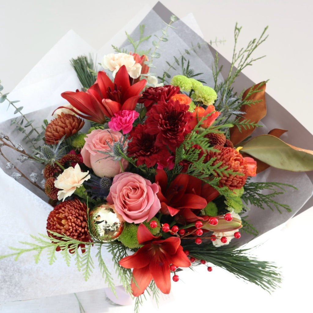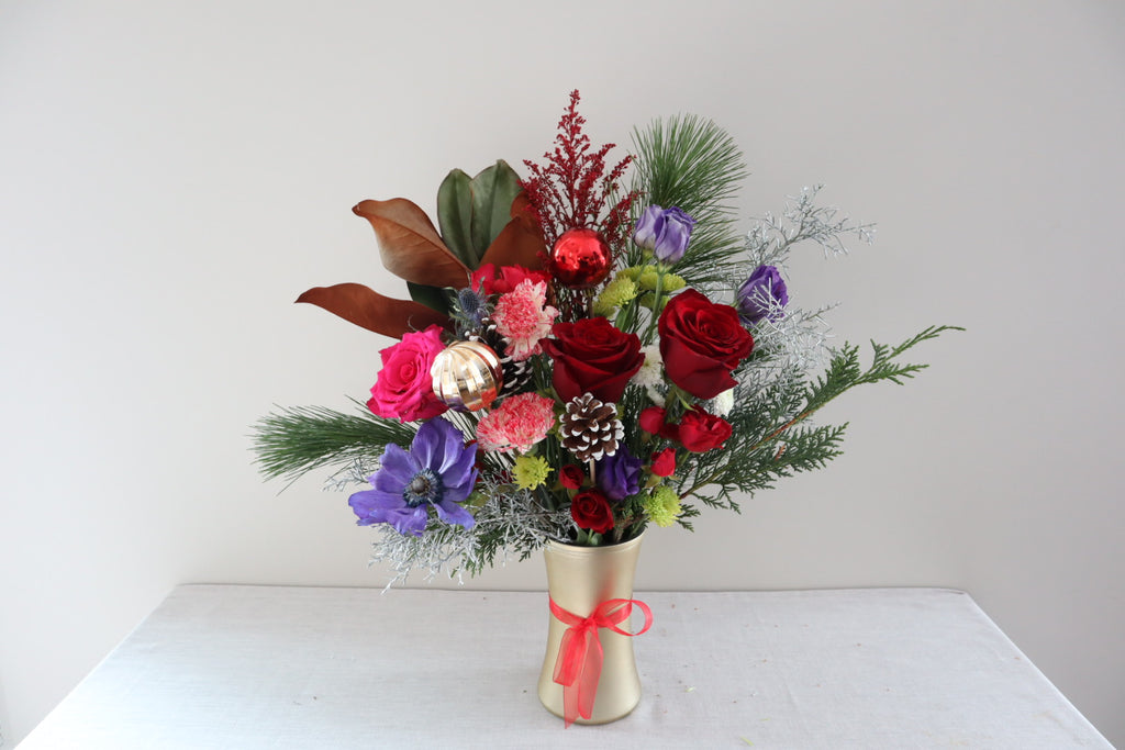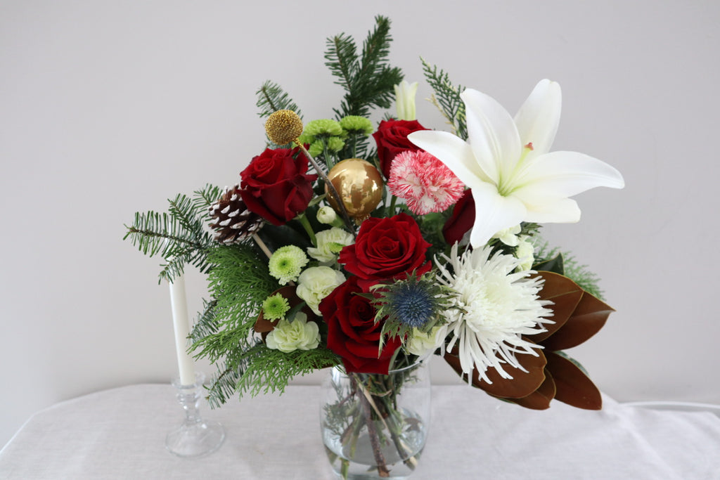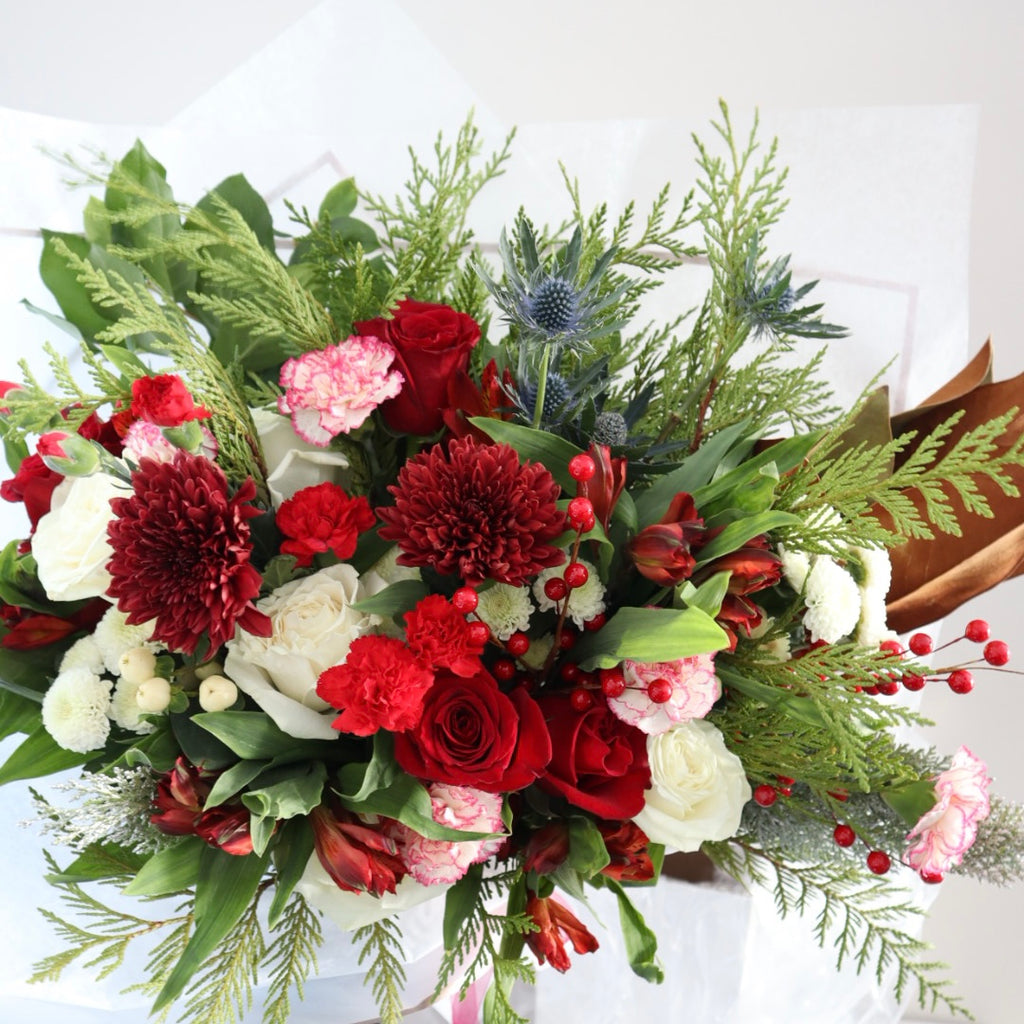 This beautiful bouquet arrangement is perfect for Christmas season and it is sure to brighten up your spaces.